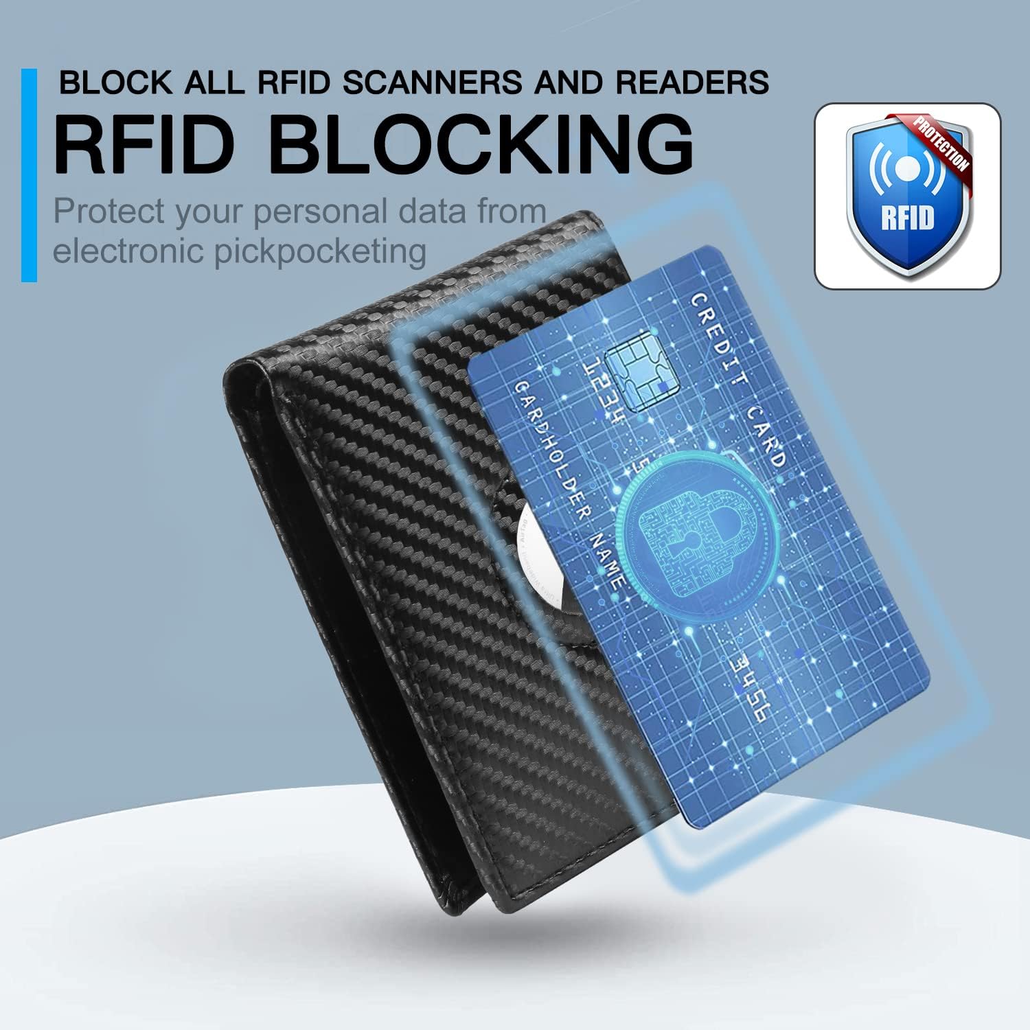 RFID BLOCKING: Huztencor air tag wallet men Designed to block Radio Frequency Identification (RFID) signals from penetrating your Wallet and scanning RFID chips located on your credit cards, ID cards, your license, and other.