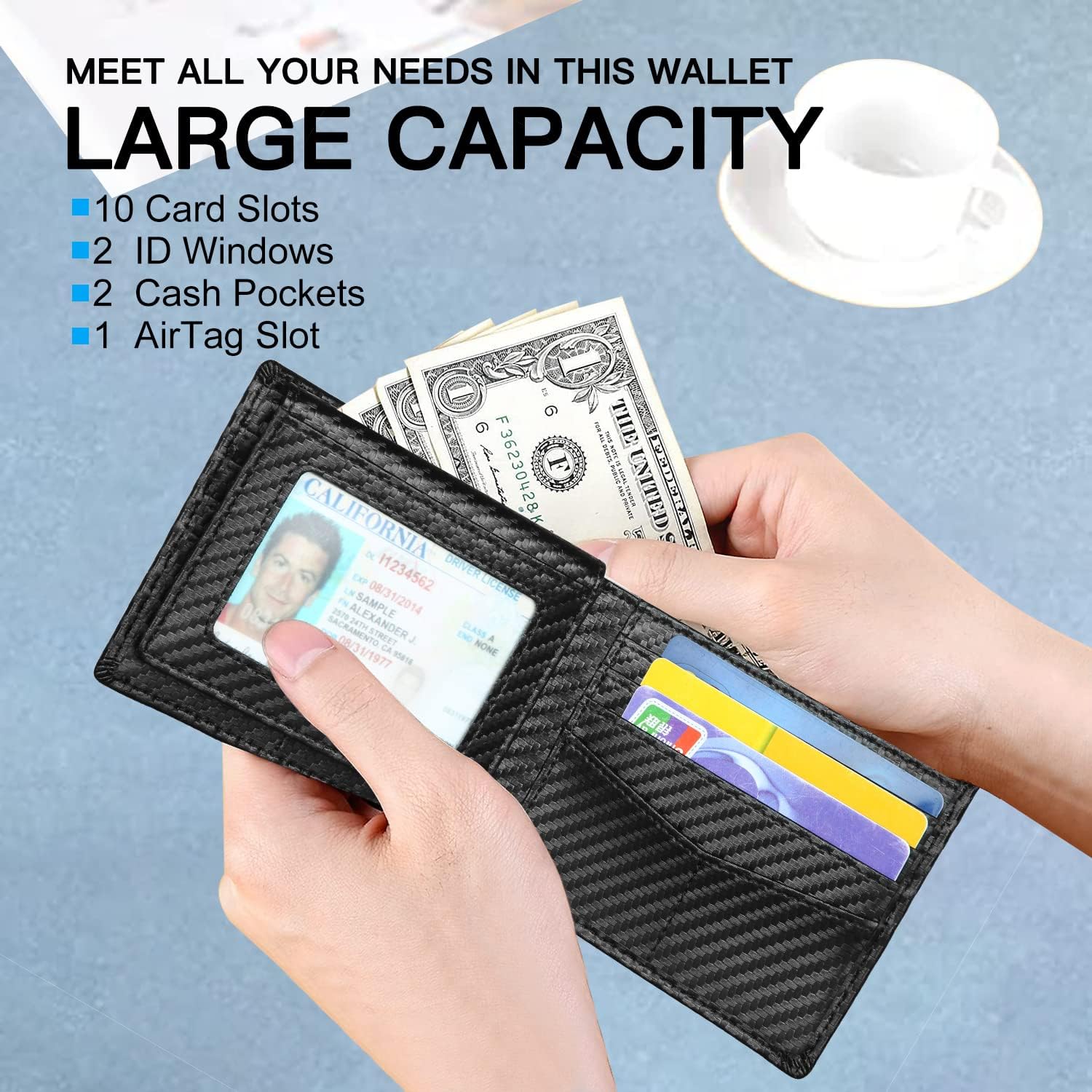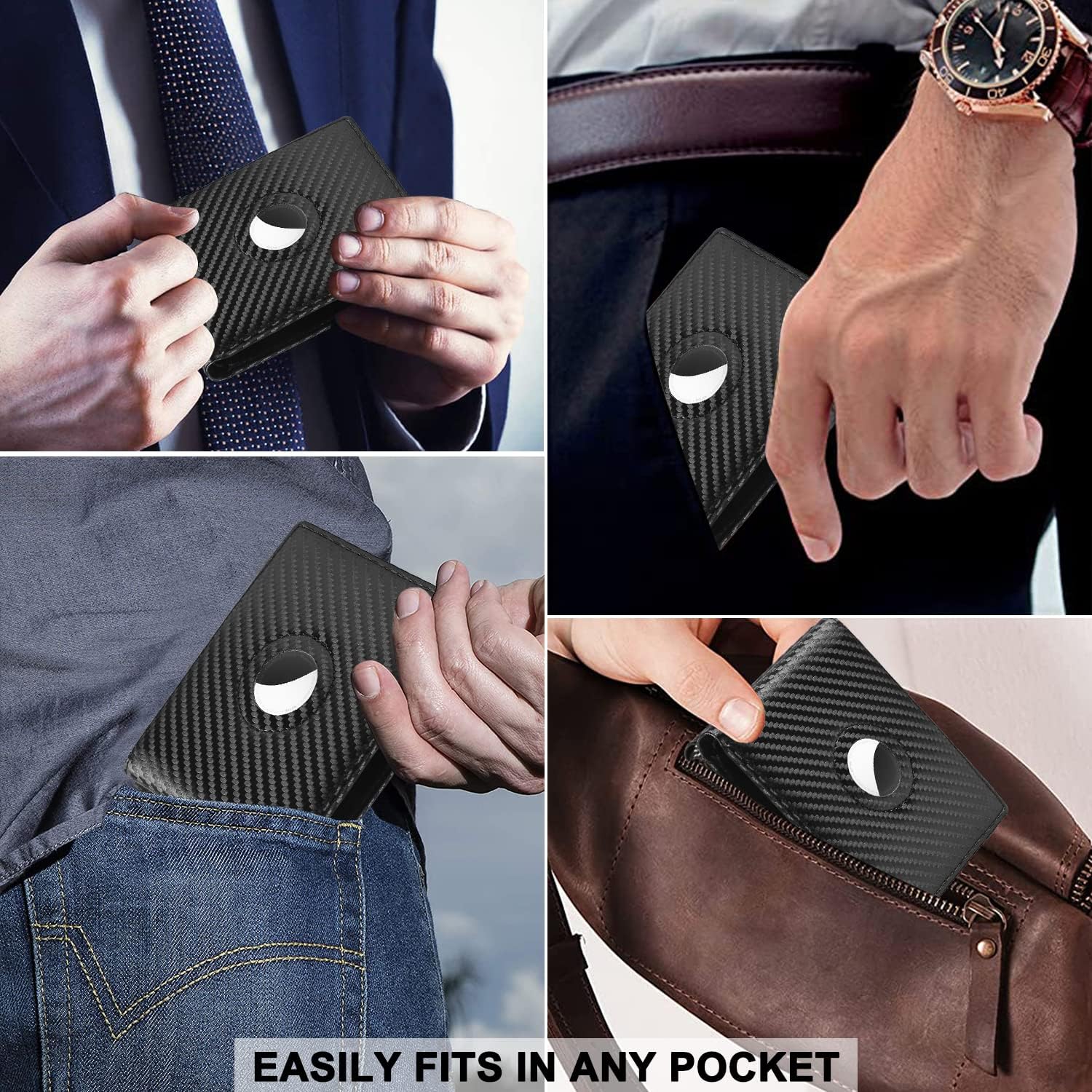 Smarter Wallet for a Man Who Demands the BestWhat type of wallet you carry as a man says allot about your character?Flashing this wallet to anyone says you are a modern hard-working man who appreciates quality without compromising safety.*Slim*Lightweight*SecureMoney section of the wallet is divided into two. Carry my Ones and Fives in front section, and my Tens and Twentyâs in the back. Make it a habit not to carry too much cash on me when I’m out. This Huztencor Bifold wallet allows me to carry just what I need.Never feels chunky or heavy when having it in my back pocket. Keeps a slim profile even while having an AirTag inserted.RFID Blocking technology shields the microchip found in your debit and credit card from being secretly powered on (Number, expiration date, CVS code sending mode) by a transmitted signal from a rogue RFID reader. This wallet integrates that technology in the design, along with providing a concave area to place an AirTag GPS tracking device.If this wallet allowed you to zipper the inner compartment closed, that would be awesome. Regardless, I feel reassured that my money and cards are totally safe when using it.I own several expensive wallets of various sizes and designs. This Huztencor RFID blocking men’s wallet with 2 ID windows and integrated holder for an AirTag is quickly becoming my go to one.Guys get one for yourself. Lady’s get one as a gift for that special man in your life. They will love it!